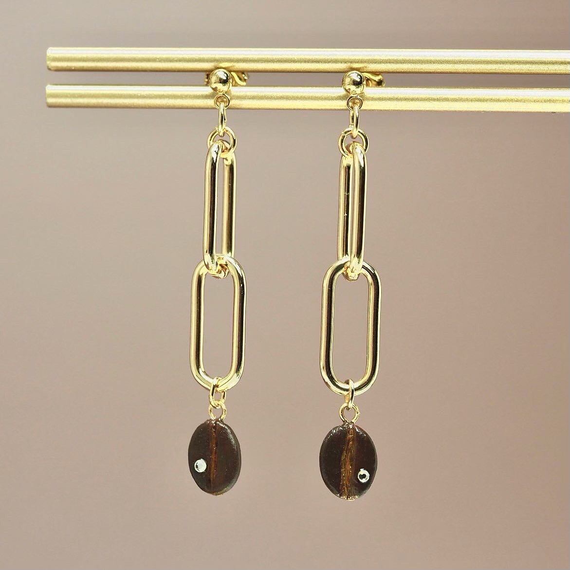 コーヒー豆とボリュームチェーンのピアス/イヤリング