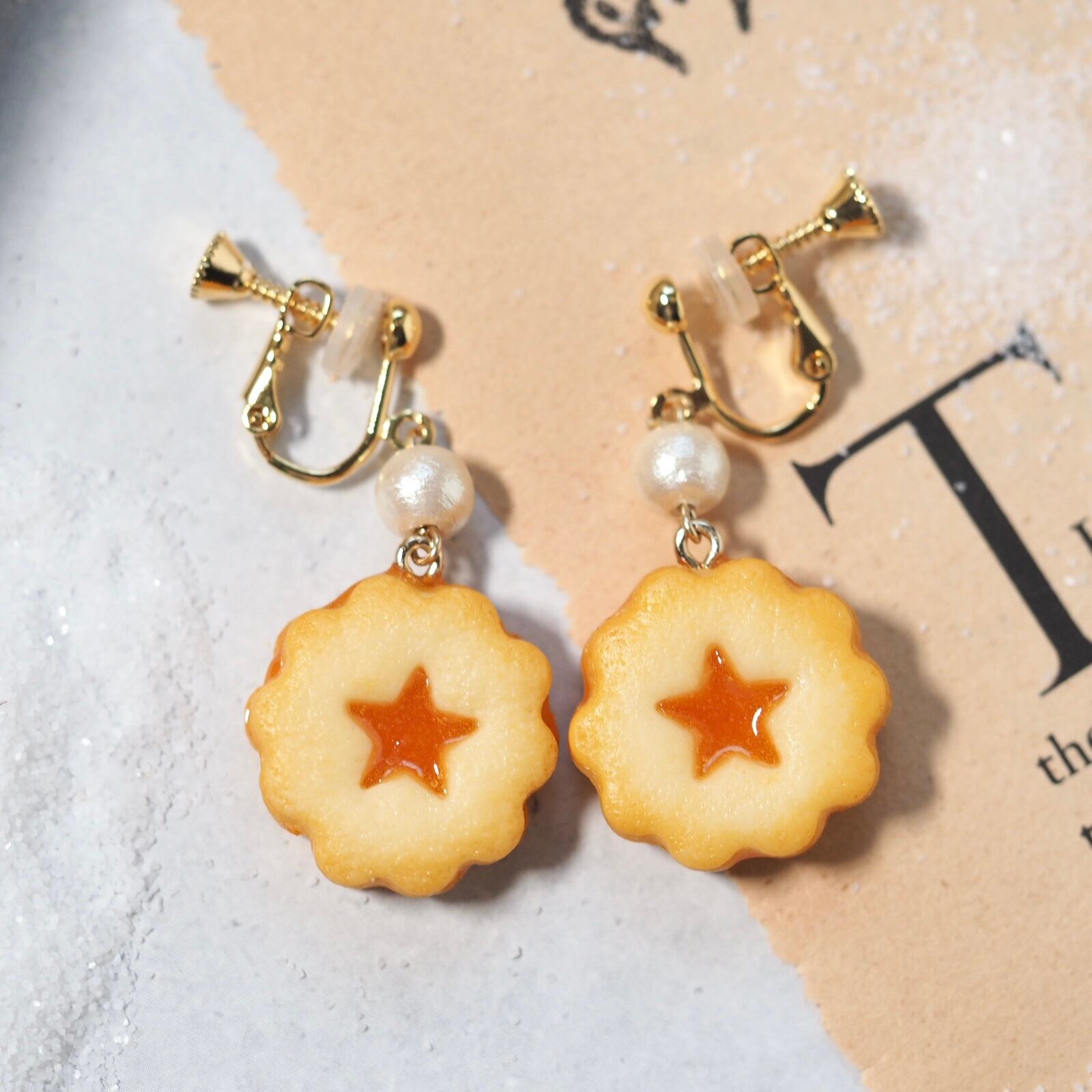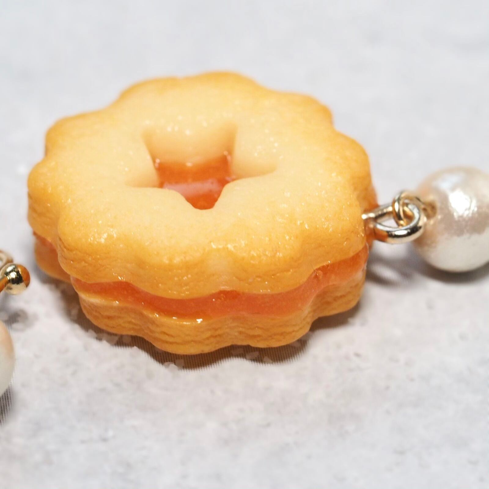 【イヤリング】オレンジジャムクッキーのイヤリング(K16GP・シリコンカバー付き)