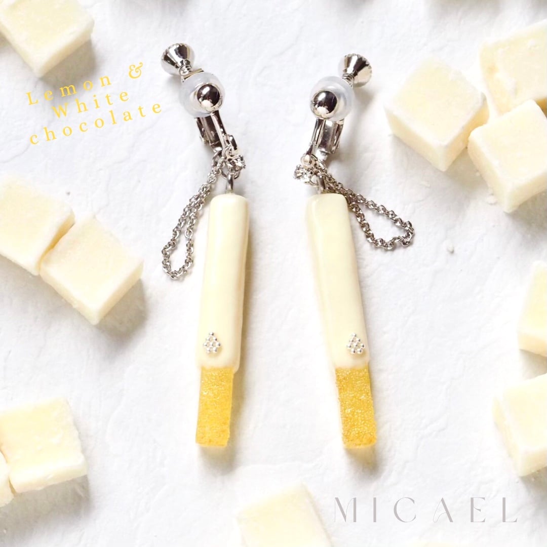 【イヤリング】スティック・シトロネットのイヤリング(本ロジウム・シリコンカバー付き)