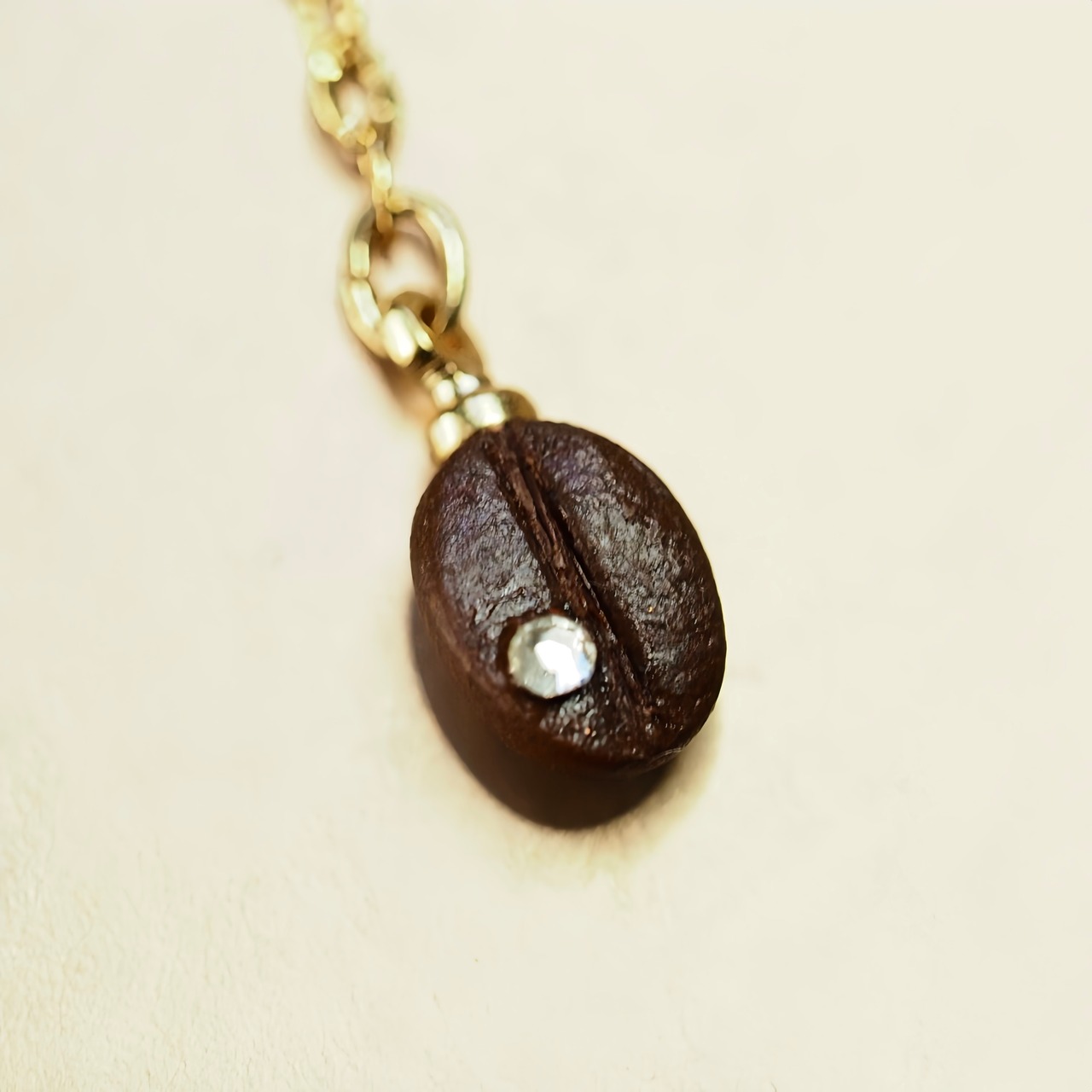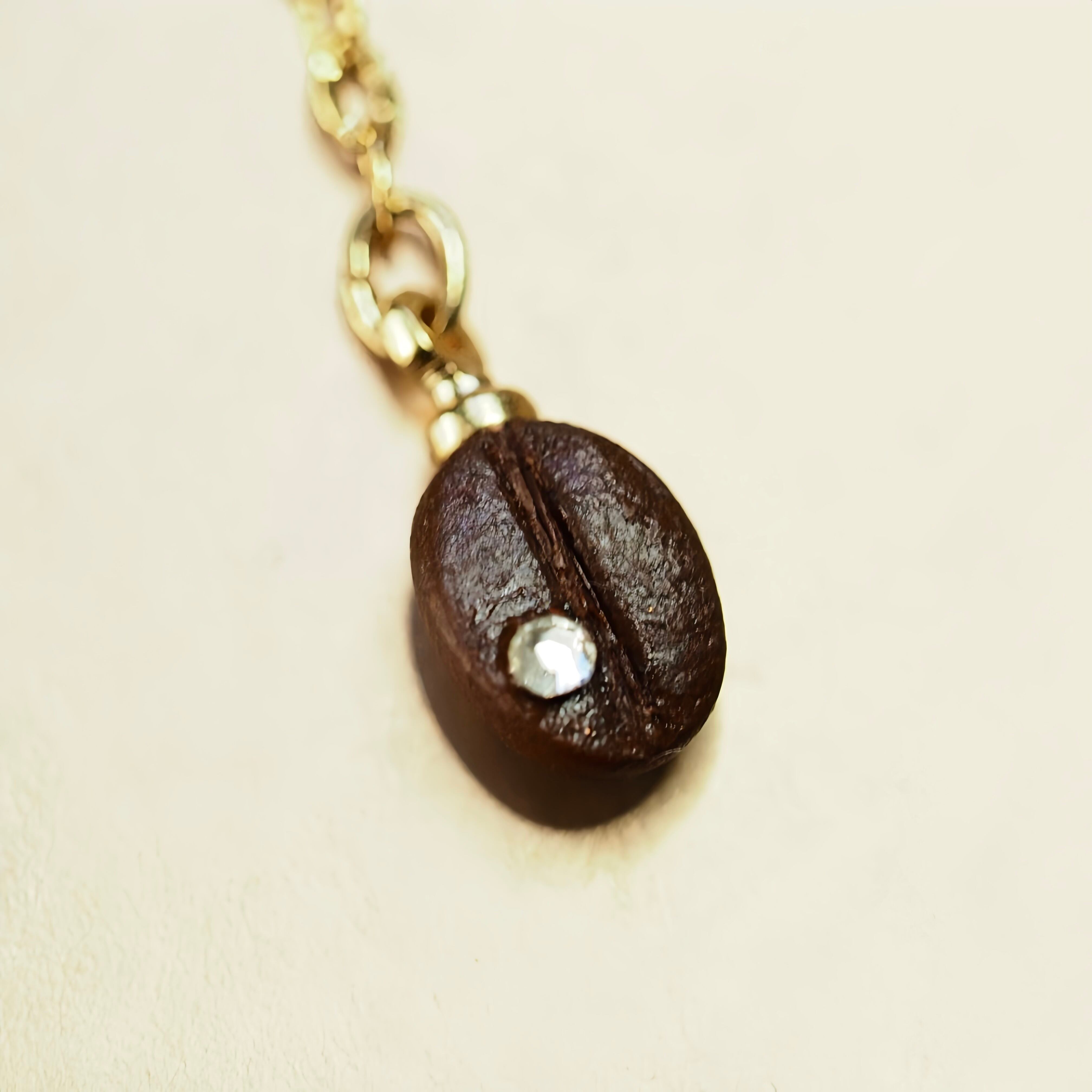 チェーンの先で揺れる定番モチーフのコーヒー豆。