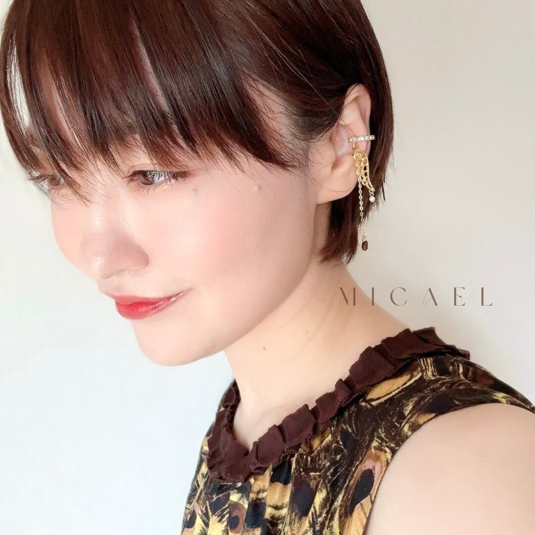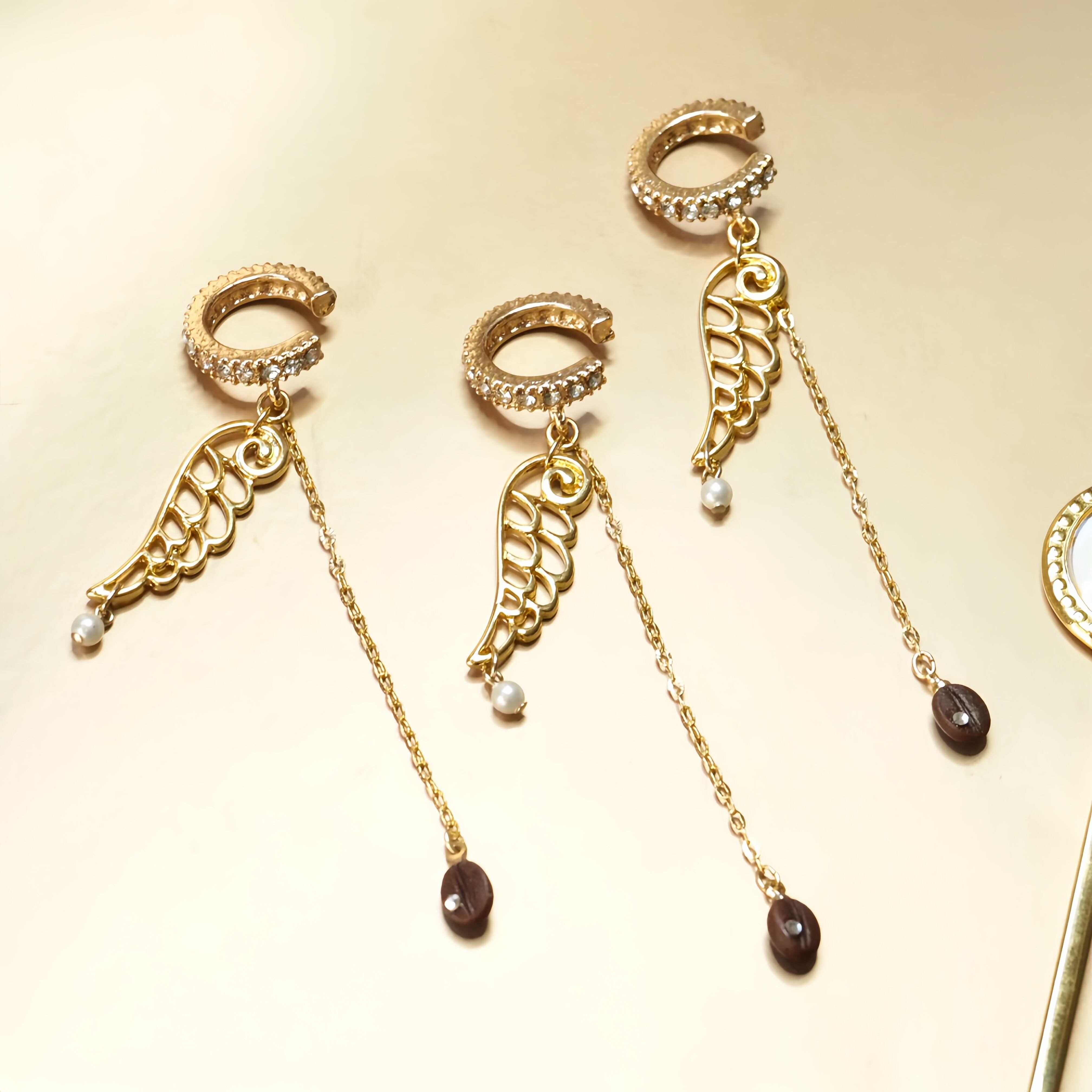 天使の羽とコーヒー豆のイヤーカフ(ゴールド・右耳用)